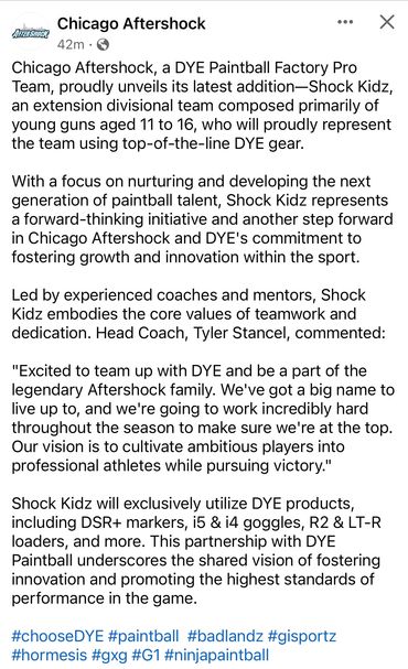 The ML Kids were offered a chance to play for the newly revived Shock Kids organization with Kyle Barry remaining as part of the pro support for the team. It's an amazing opportunity to be a part of this legendary team.